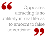 Cited at least as often as the bird-flocking maxim is the dictum that "Opposites attract." Is this true? Perhaps similarity is so