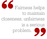 Fairness helps to maintain closeness; unfairness is a serious problem. It's possible for one person to be unfair in terms of words,