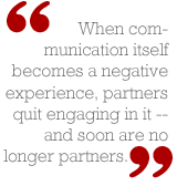 communication itself becomes a negative experience, partners quit engaging in it -- and soon are no longer partners.